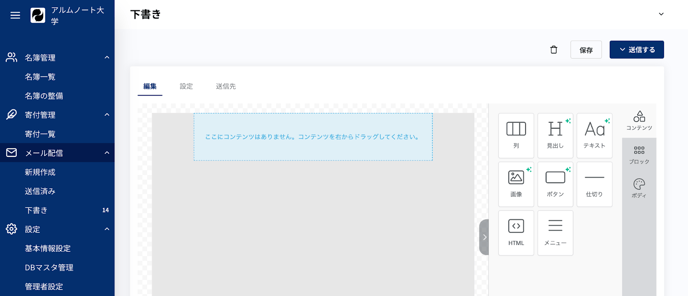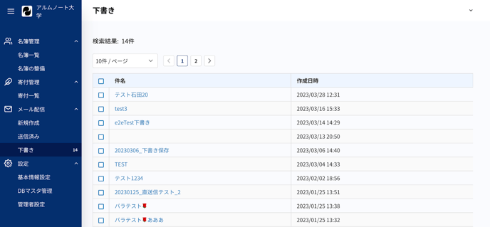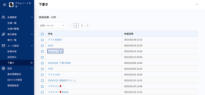 メール配信 > 下書き: 下書きメール一覧を閲覧する