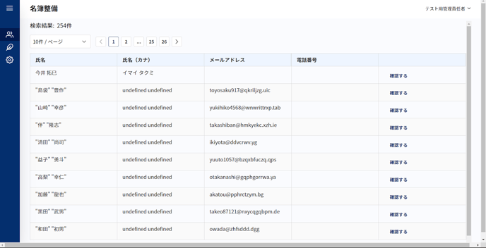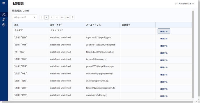 • 名寄せする名簿の行の右端にある”確認する”ボタンをクリックして名簿整備モーダルを開く