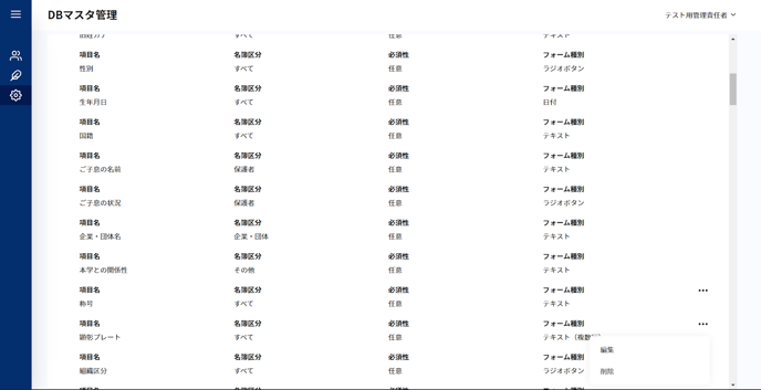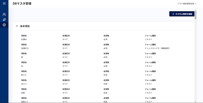設定 > DBマスタ管理: 名簿項目に関わる設定をする