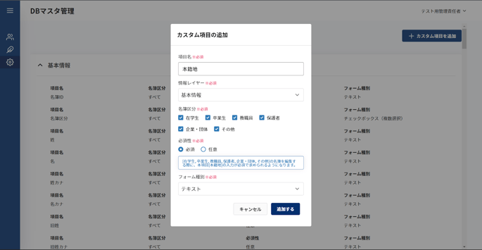 - 具体的な内容は名簿項目を追加するを参照